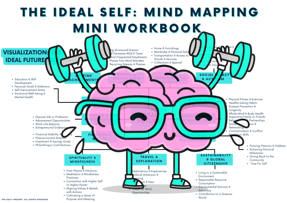 This is a mind map and workbook I created to help with self-actualization and visualization. It is a wonderful personal development resource that anyone can use at any point in life to gain clarity about who they are as a person and what they want their future to look like.